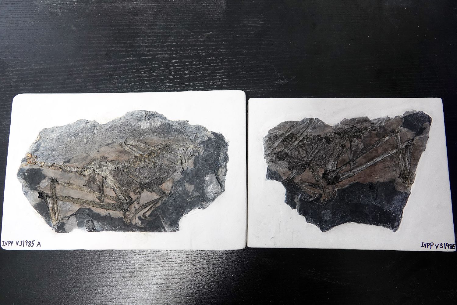 9月4日,在中国科学院古脊椎动物与古人类研究所拍摄的约1.5亿年前鸟翼类恐龙“奇异福建龙”化石标本。 中新社记者 孙自法 摄