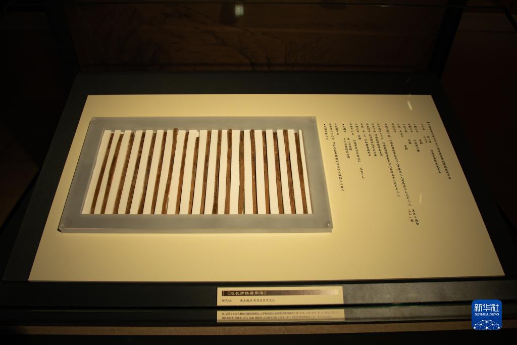 甘肃简牍博物馆展出的由18枚简牍组成的“过长罗侯费用薄”。(图片来源:新华网)