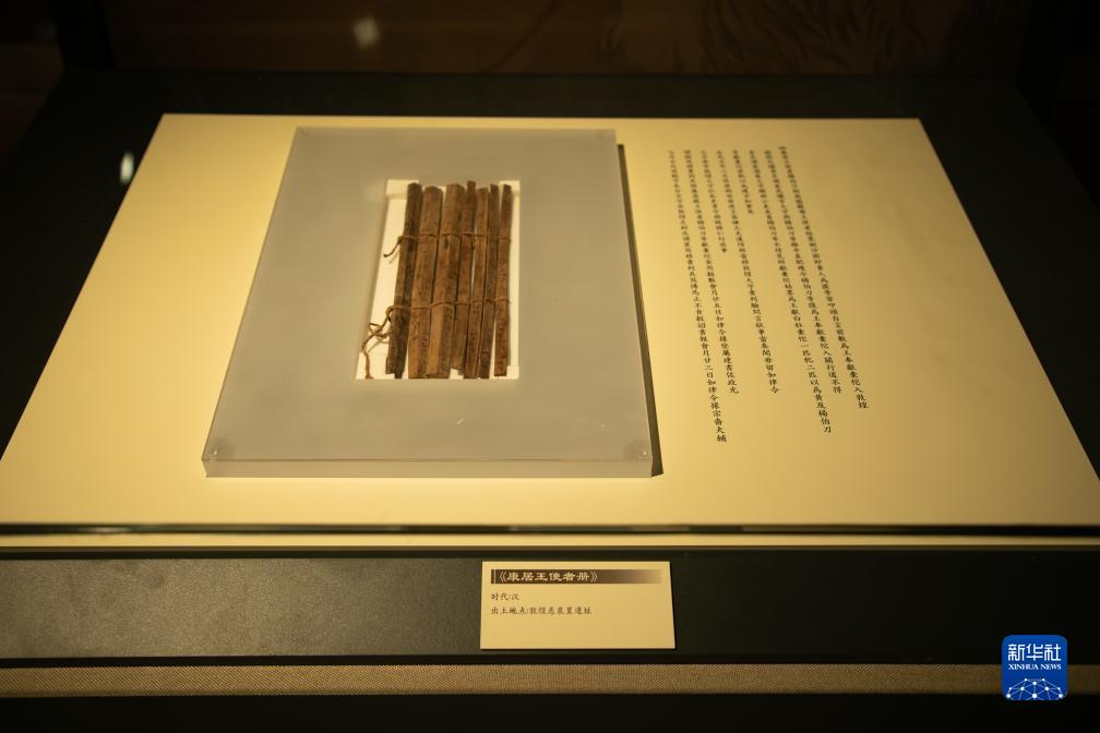 甘肃简牍博物馆展出的由7枚简牍组成的“康居王使者册”。(图片来源:新华网)