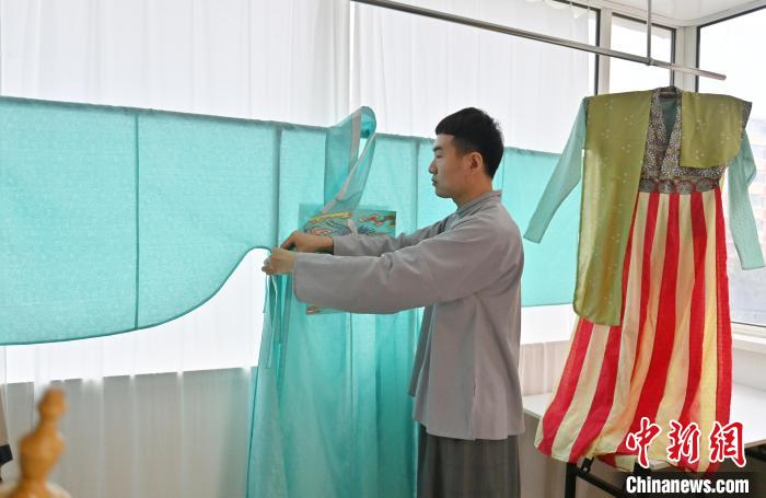 近十年来他一直致力于汉服的制作与推广。为了在各种史料中收集汉服的资料和图片,他去过很多城市。(图片来源:中新网)