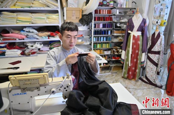 “90后”长春市民尹航是一位汉服裁缝,2015年至今已为海内外汉服爱好者制作千余件汉服。他希望通过自己的一针一线勾勒出传统汉服之美,让更多的人接触到古色古香、原汁原味的汉服。