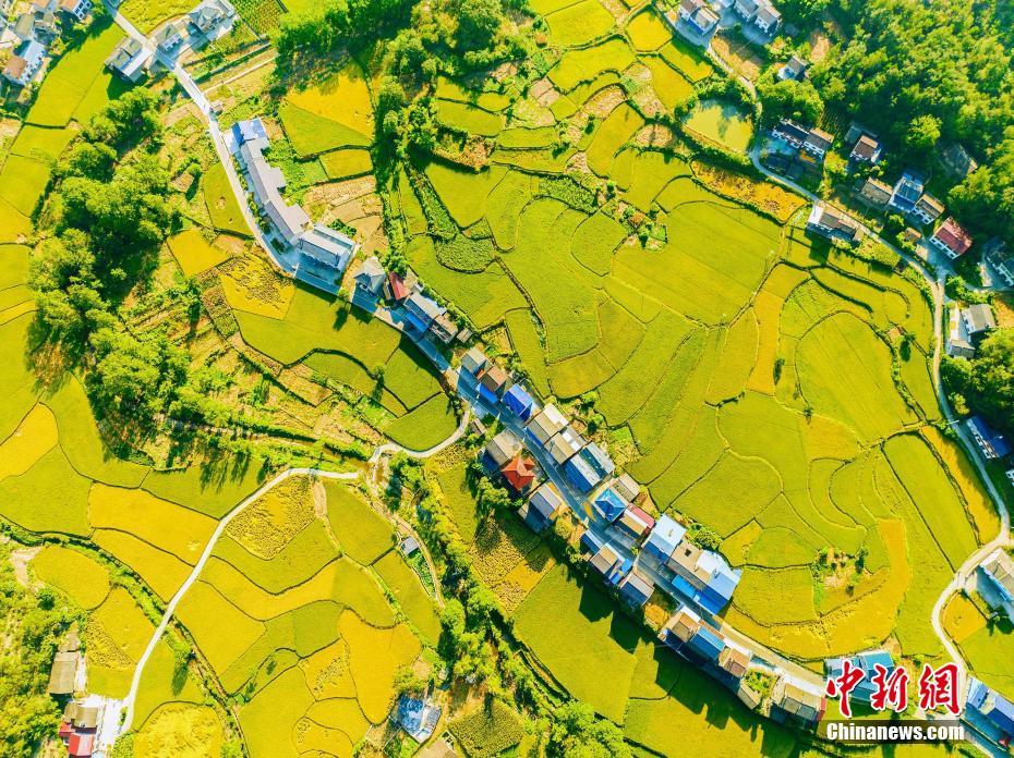 秋季,中国各地的水稻陆续成熟,金灿灿的层层稻田与民居、公路、山峦等相映成景,构成一幅幅迷人的和美乡村田园画卷。