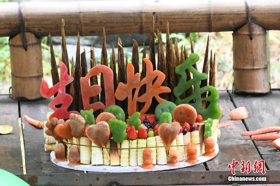 图为重庆动物园的饲养员们为大熊猫准备的生日蛋糕。(图片来源:中新网)
