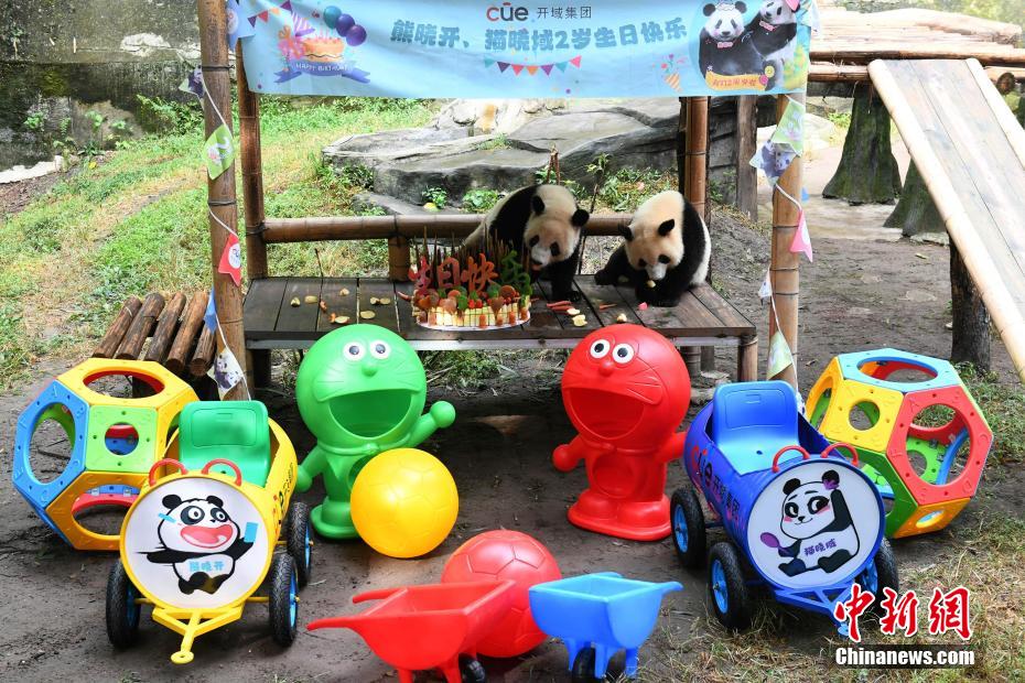 图为重庆动物园为“熊晓开”“猫晓域”举办两周岁生日会。(图片来源:中新网)