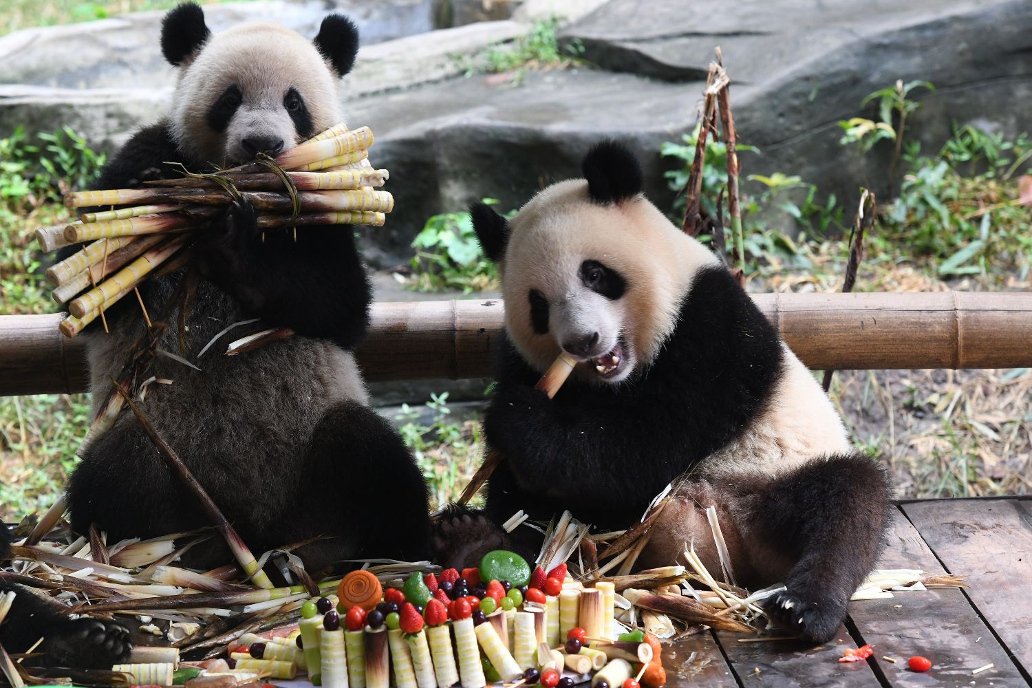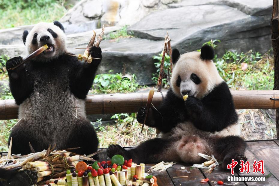 图为大熊猫吃“生日宴”。(图片来源:中新网)