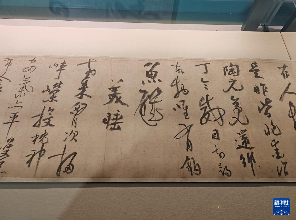 展出的陆游《自书诗卷》(局部)。(图片来源:新华网)