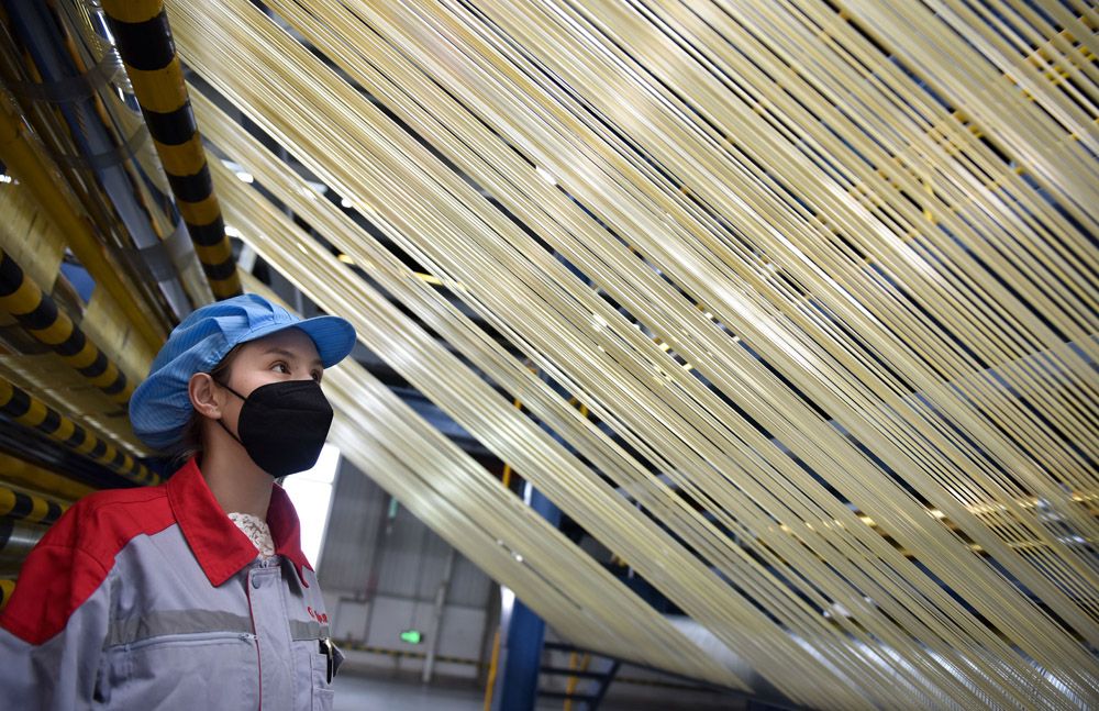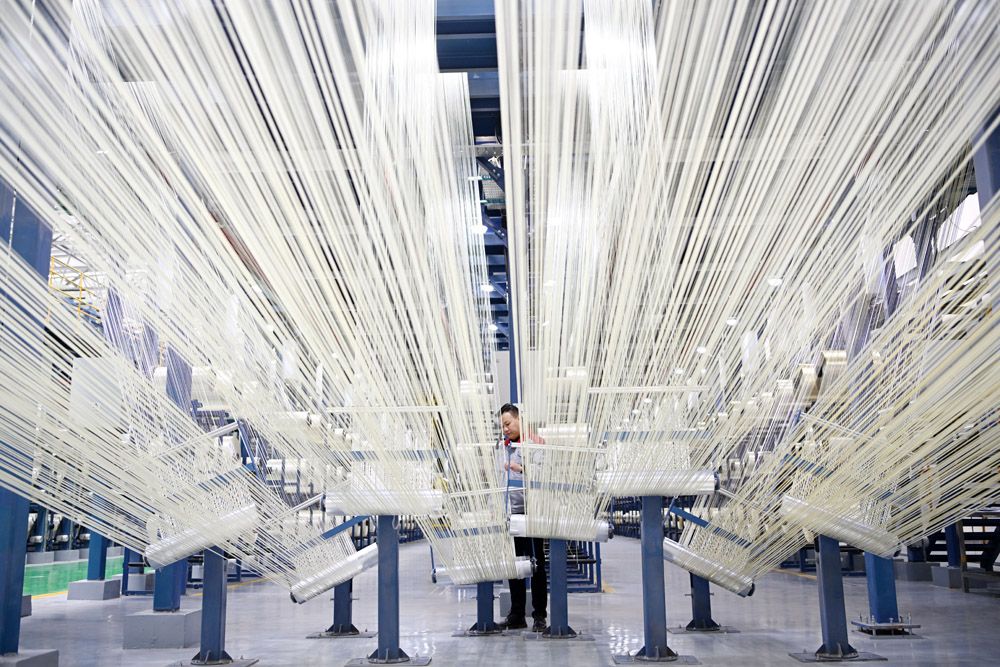 碳纤维作为中国国家战略性新材料,以其优异的综合性能被广泛应用在现代工业体系中。近两年,中国碳纤维生产研发行业已逐步击破海外在技术、装备、产品等方面的三重封锁,大力推动碳纤维行业高质量发展。图为在中国建材集团西宁万吨碳纤维生产基地,工作人员在整理碳纤维原丝。(图片来源:本文图片除标注外均综编自新华社)