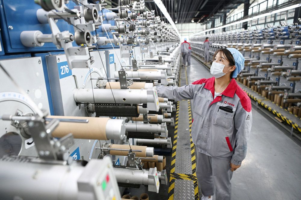 9月13日,位于新疆乌鲁木齐甘泉堡经开区的新疆隆炬新材料有限公司“年产5万吨高性能碳纤维项目”一期生产车间里,工人正在生产高性能碳纤维产品。新疆隆炬“年产5万吨高性能碳纤维项目”总投资60亿元,计划5年内分四期建设8个碳化车间(16条生产线),项目全部建成后,这里将成为全球单体最大的高性能碳纤维制造基地。(图片来源:中新社)