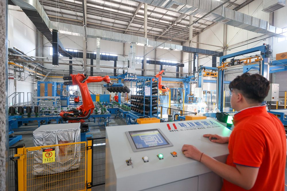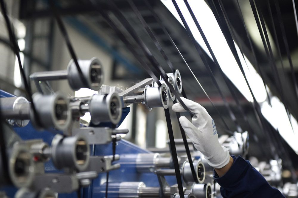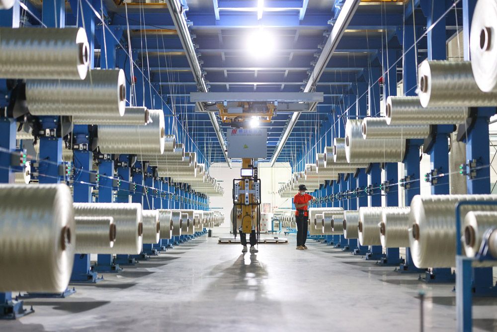 工人正操作自动化设备生产高性能碳纤维产品。(图片来源:中新社)