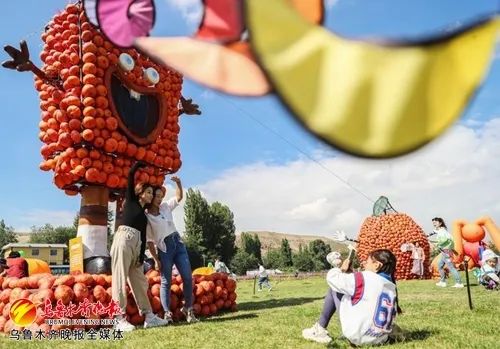 图为巨型南瓜狂欢节吸引众多市民和游客前来打卡拍照。(图片来源:《乌鲁木齐晚报》微信公众号)