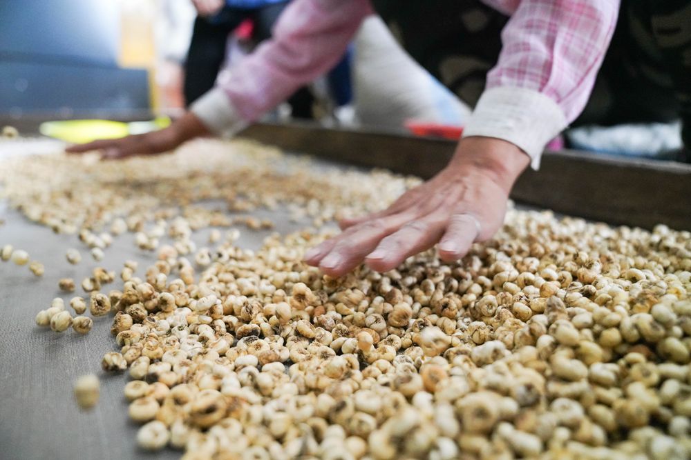 近年来,黑龙江省铁力市持续发展平贝产业集群,逐步形成集种植、清洗、烘干、仓储、加工、销售为一体的产业链,目前以平贝为代表的中药材产业已成为当地促农增收的重要产业。铁力市铁力镇满江红村今年平贝种植面积为3000亩,产量超过3000吨,产值约1.3亿元人民币,带动就业1500人次。在满江红村的辐射带动下,铁力市有近40个村屯开展平贝种植,总面积超过1万亩。图为在满江红村的铁力市裕盛平贝种植农民专业合作社,工人在挑选平贝。