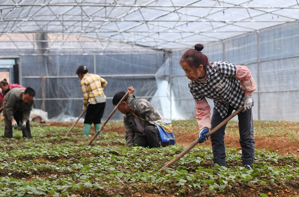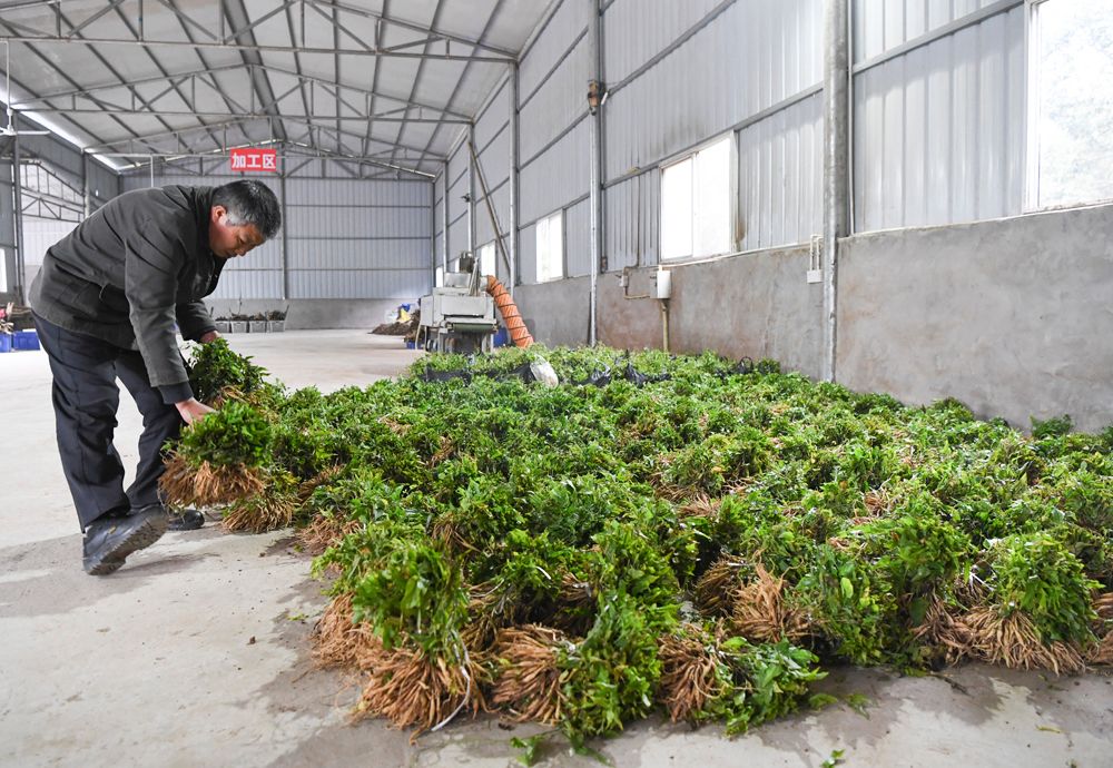 近年来,重庆市大足区通过引进龙头企业、完善基础设施、拓展产业链条、建立“公司+村集体+农户”的利益联结机制等举措,大力发展中药材产业,产业规模和效益不断提升。图为在重庆大足区玉龙镇玉龙村,重庆圣草源中药材种植有限公司工作人员整理百部苗。