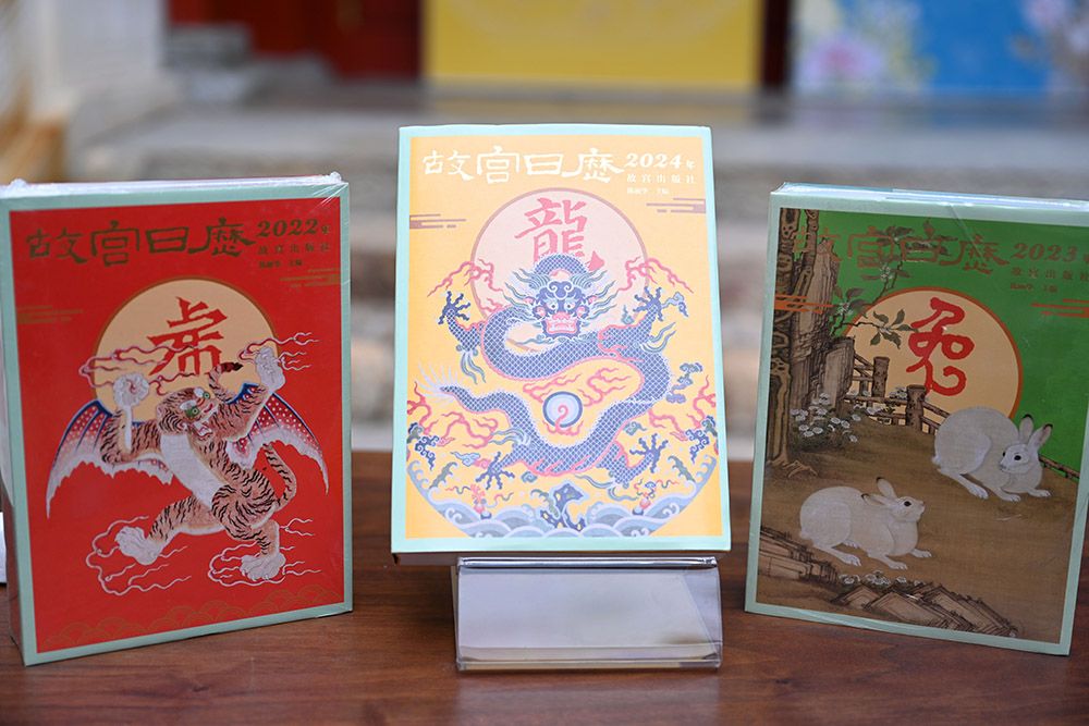 2022年、2023年、2024年《故宫日历》。(图片来源:新华社)