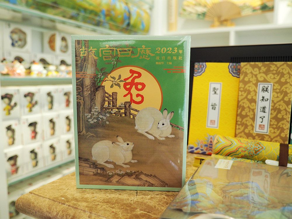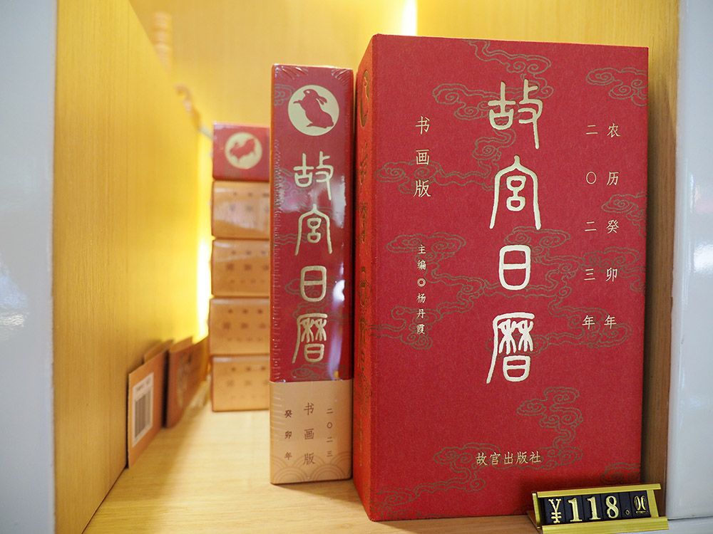 故宫文创商店内展示的兔年《故宫日历·2023年》。(图片来源:中新社)