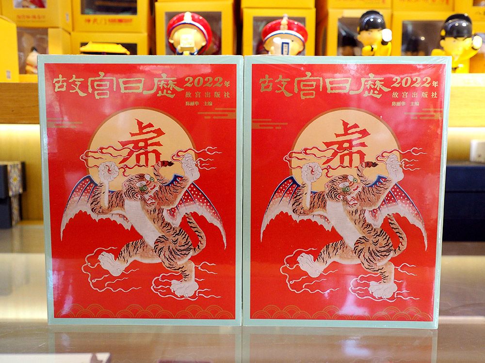 在故宫文创店内拍摄的2022年版《故宫日历》。(图片来源:中新社)