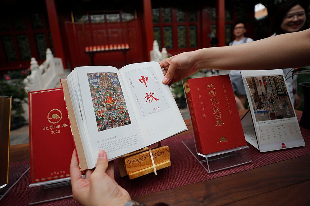 由故宫出版社主办的2020年《故宫日历》发布会在故宫博物院建福宫花园敬胜斋举行。(图片来源:中新社)