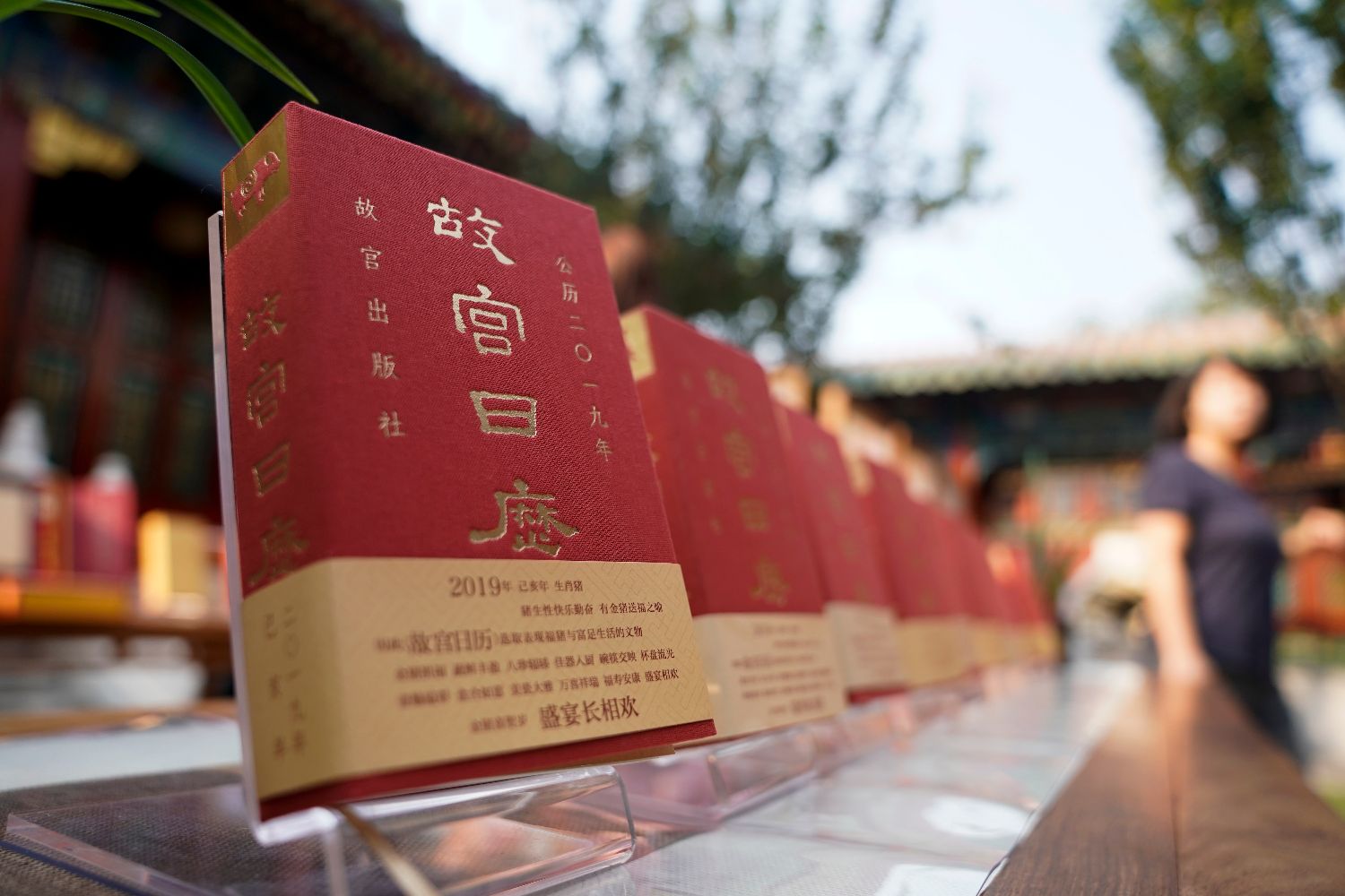 故宫出版社与凤凰艺术在北京故宫博物院联合发布2019年《故宫日历》。(图片来源:中新社)