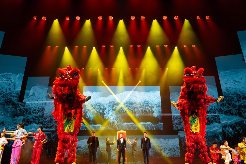9月10日拍摄的“同声歌祖国:壮丽山河——澳门各界庆祝新中国成立七十四周年文艺晚会”现场。(图片来源:新华社)