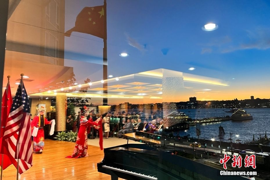 此外,在美国纽约,中国驻纽约总领馆举行侨学界专场招待会,隆重庆祝中华人民共和国成立74周年。来自领区十州的侨胞、华人专家学者、留学人员代表600余人出席。图为当地时间9月15日,美东侨学界艺术家为大家表演京剧《梨花颂》时的情景倒映在现场玻璃窗上。(图片来源:中新网)