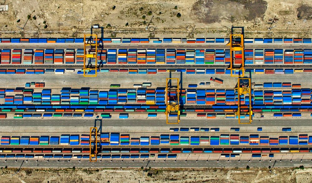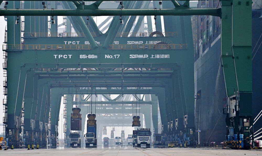 9月18日,卡车在天津港太平洋国际集装箱码头运输集装箱。作为京津冀地区重要的海上门户,近年来,天津港依托海陆运输节点的枢纽优势,积极推动海铁联运,保持中欧(中亚)班列运量持续稳定增长。今年以来,从天津港发运的中欧(中亚)班列已近500列。(图片来源:本文图片均综编自新华社)