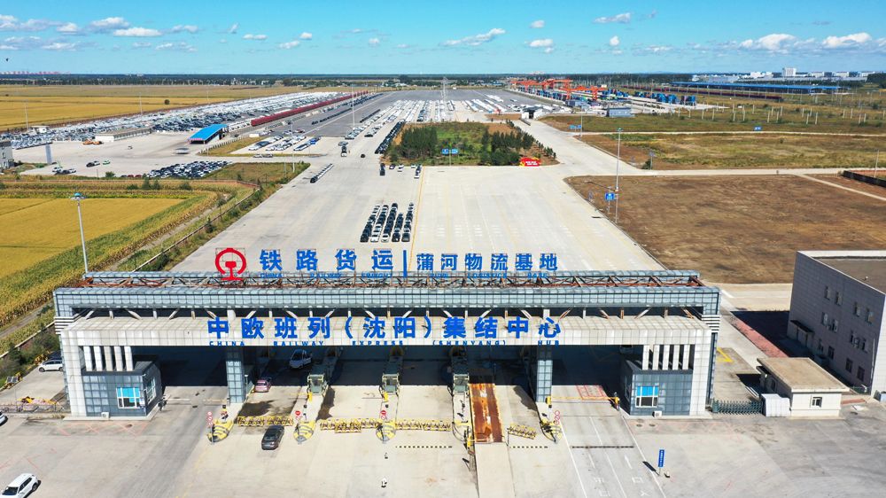 9月19日,在中欧班列(沈阳)集结中心,中国铁路沈阳局集团有限公司工作人员使用龙门吊进行中欧班列装车作业。10年来,中国铁路沈阳局集团公司不断完善物流网络、畅通运输通道,为客户提供多元化货运产品,保持中欧班列运量持续稳定增长,将区位优势和运输优势转化为助力辽宁经济社会发展的不竭动能。