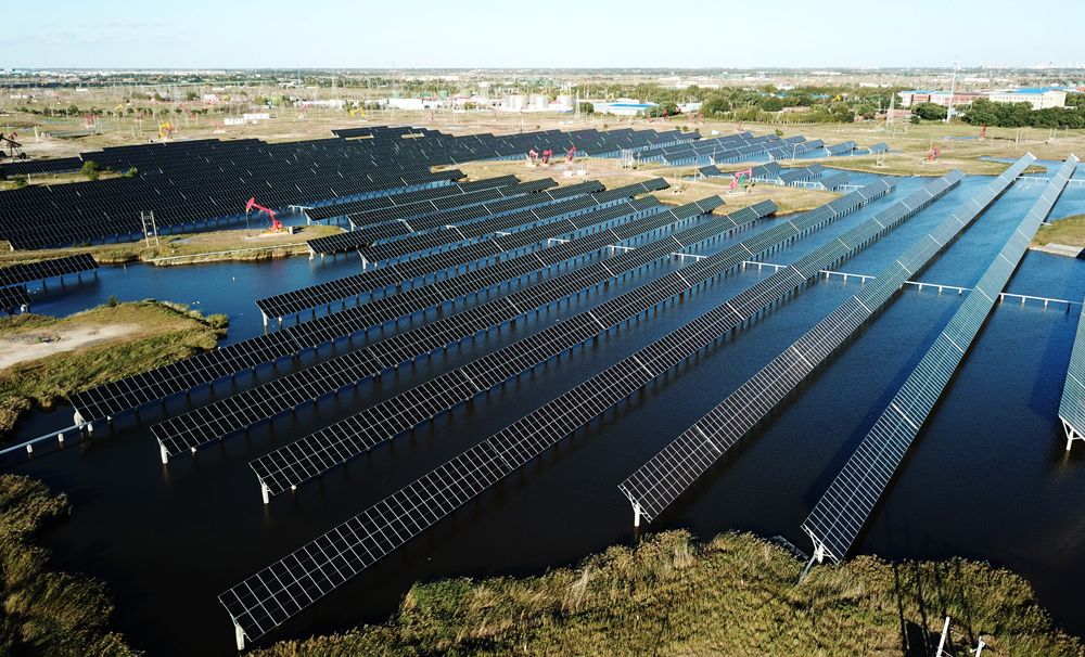 9月19日,拍摄的大庆油田星火水面光伏电站局部。中国石油首个水面光伏项目——大庆油田星火水面光伏电站是积极响应国家“双碳”战略目标、贯彻落实中国石油“清洁替代、战略接替、绿色转型”总体部署、打造“大庆油田绿色低碳可持续发展示范基地”的先导示范工程。(图片来源:本文图片均综编自新华社)