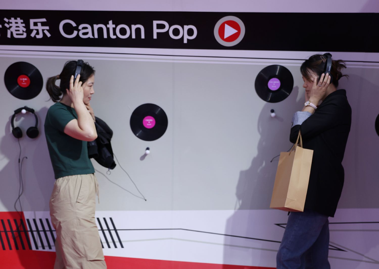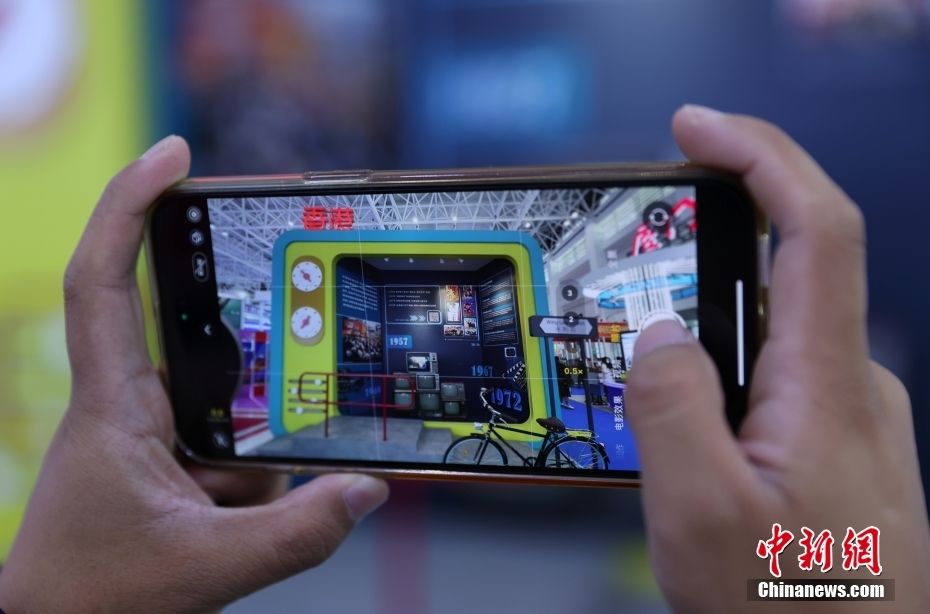此区域还设有香港打卡胜地—都爹利街的拍摄体验,360度环绕式拍摄为大家带来沉浸式的互动体验。图为市民参观“你好,潮流香港!”巡回展。(图片来源:中新网)