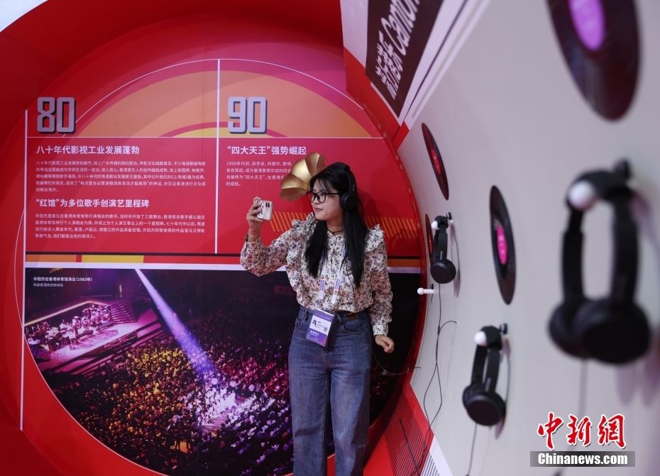 据了解,展览以丰富的图文、影片、道具以及互动体验,详细介绍了香港流行文化在歌、影、视三个领域的传承与发展,还着重点介绍了香港作为中外文化艺术交流中心的新定位。图为市民参观“你好,潮流香港!”巡回展。(图片来源:中新社)
