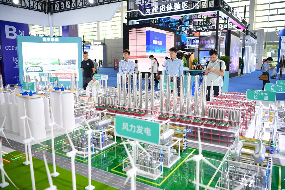 9月21日,嘉宾在第六届中国—阿拉伯国家博览会现场了解清洁能源项目。(图片来源:新华社)