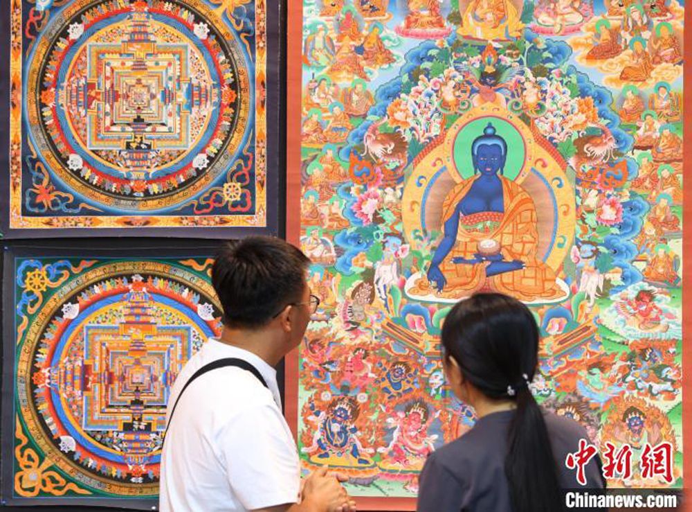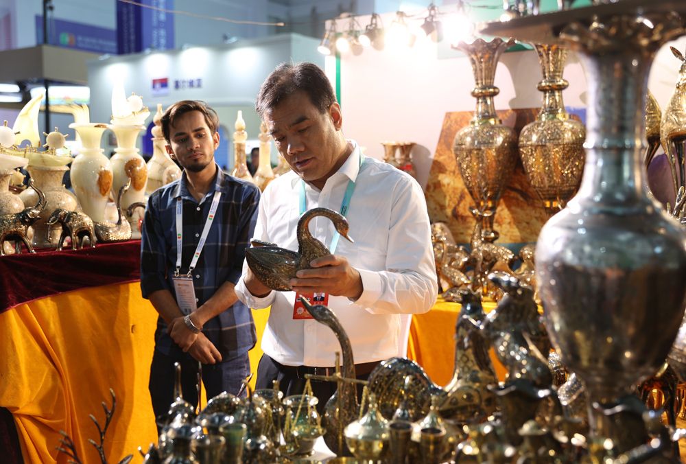 民众在宁夏国际会展中心国际展区内的尼泊尔展位内参观。(图片来源:中新网)