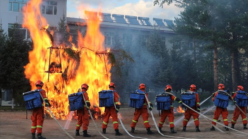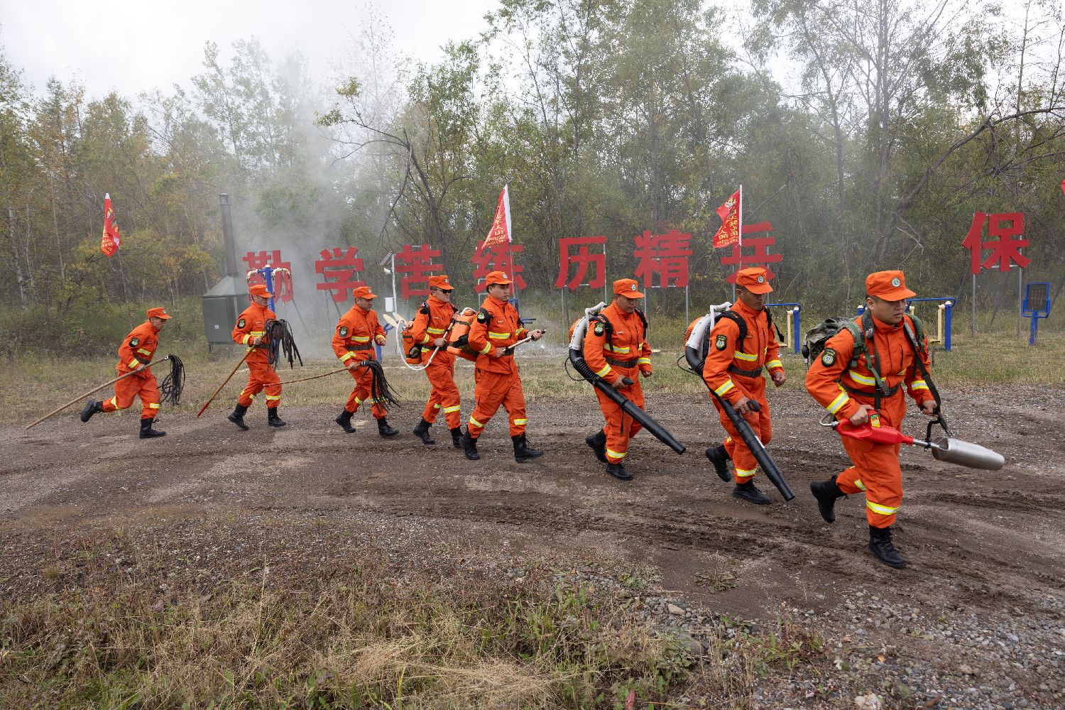 9月20日,大兴安岭地区森林消防支队开展实战化灭火演练,严阵以待备战秋季森林防火期。(图片来源:人民网)