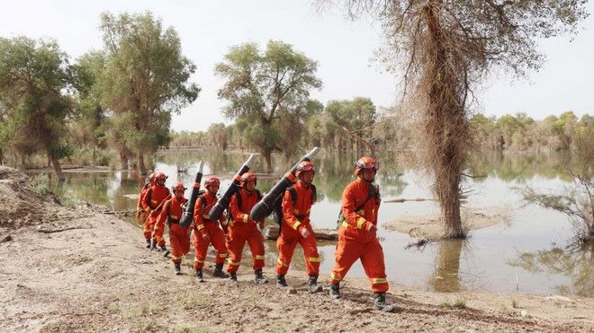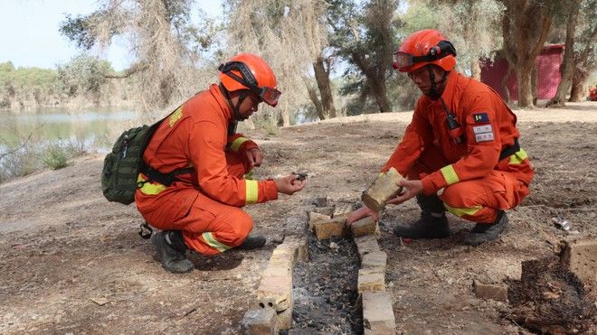 为做好秋季防火各项工作,新疆森林消防总队巴音郭楞蒙古自治州支队阿克苏大队精准分析研判近期防火形势,扎实开展了携装巡护、林下可燃物踏查、火场心理行为训练,持续筑牢秋季防火安全屏障。(图片来源:北京央广网)