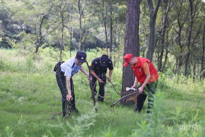 9月7日,安徽和县公安局香泉派出所联合特巡警大队组成巡逻队,深入林区开展常态化防火巡查和宣传工作。图为民警排查消除火灾隐患。(图片来源:北京央广网)