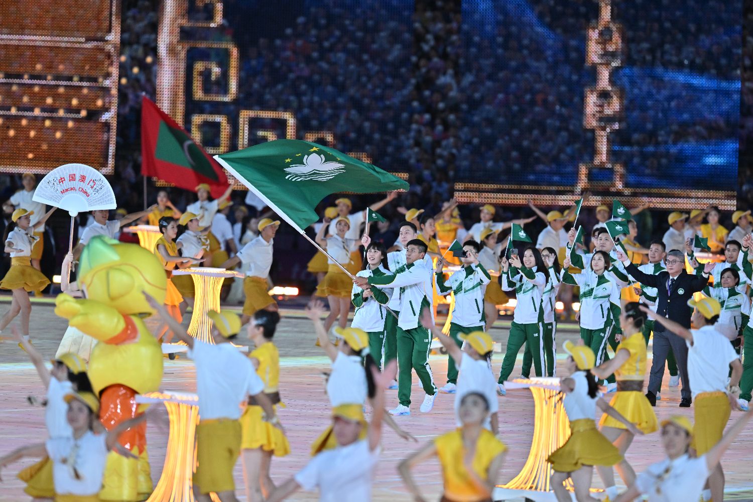 图为中国澳门代表团入场。(图片来源:中新社)