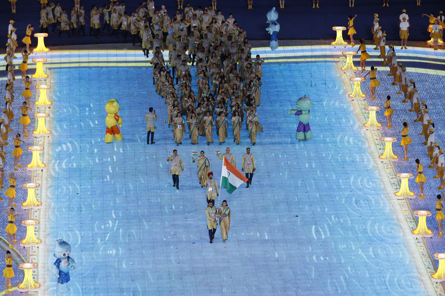 图为印度代表团入场。(图片来源:中新社)