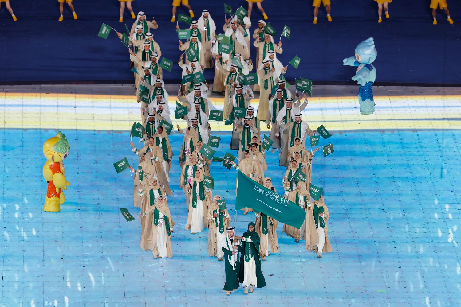 图为沙特阿拉伯代表团入场。(图片来源:中新社)
