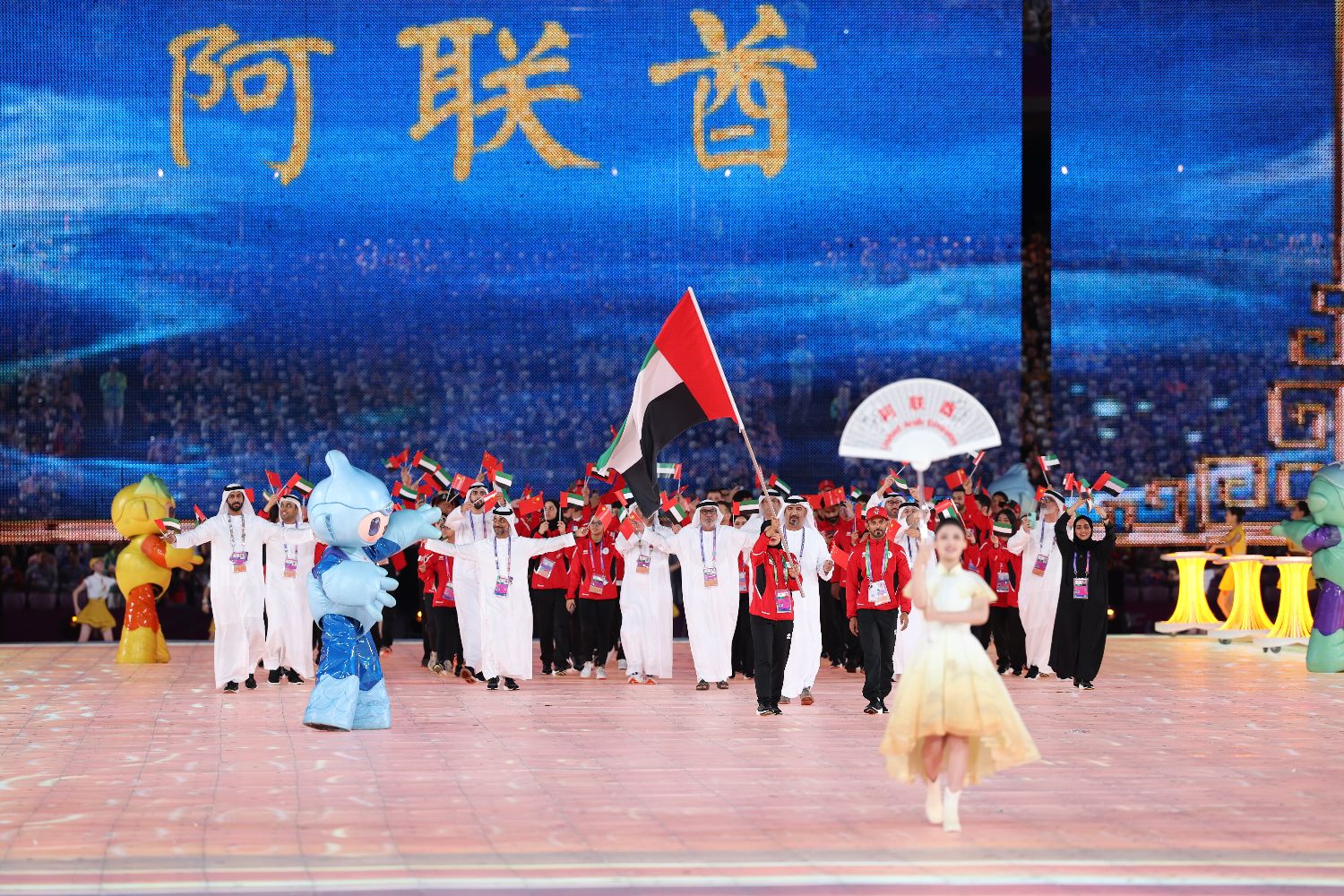 图为阿联酋代表团入场。(图片来源:中新社)