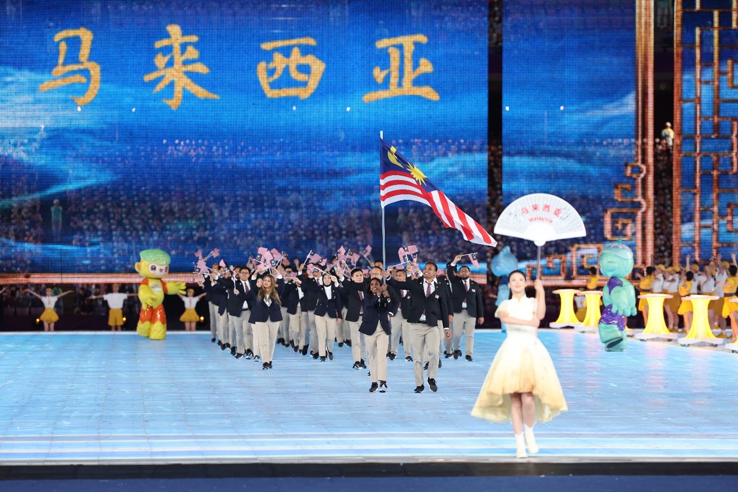 图为马来西亚代表团入场。(图片来源:中新社)