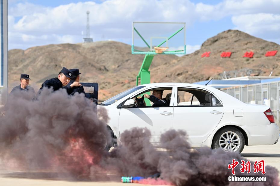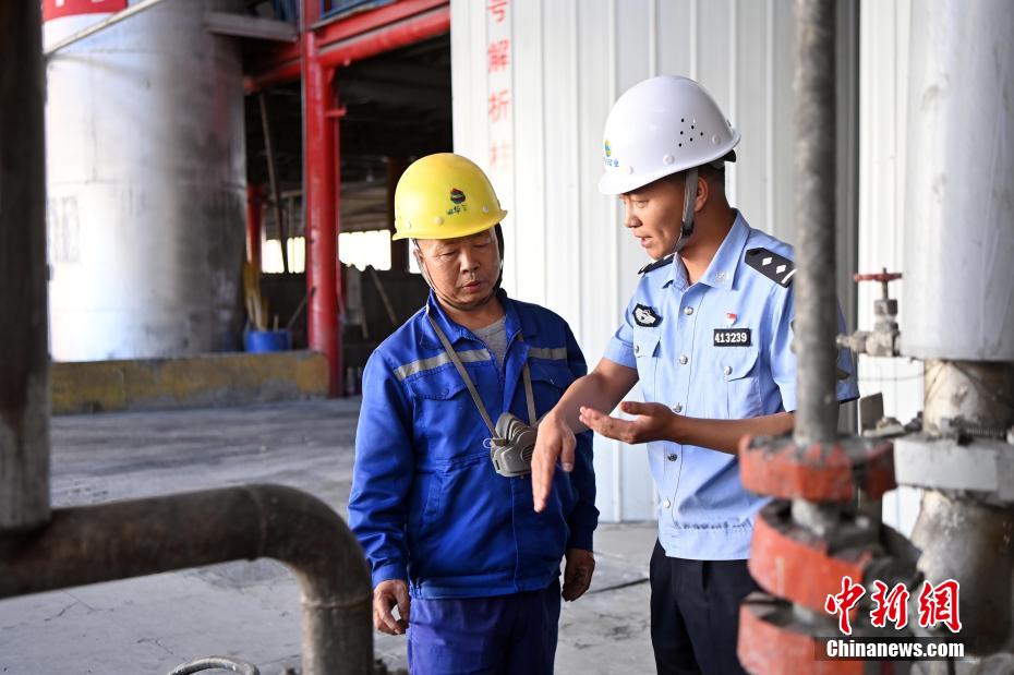 甘肃出入境边防总站酒泉边境管理支队民警在马鬃山辖区一矿企开展安全检查工作。(图片来源:中新网)