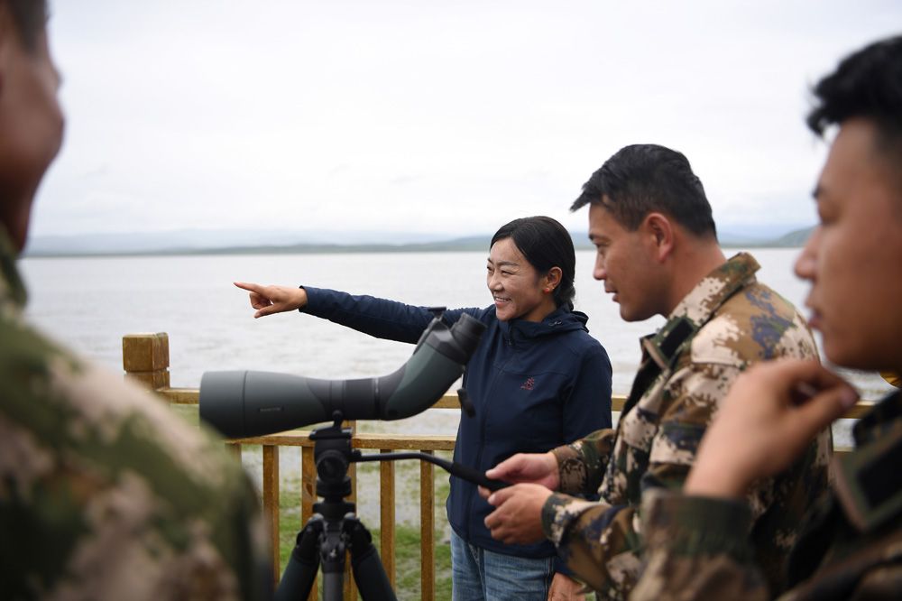 除警务人员,生态保护者也是甘肃地区令人敬佩的守护者——甘肃省甘南藏族自治州是黄河、长江上游重要的水源涵养和补给区,在甘南境内的甘肃尕海则岔国家级自然保护区、甘肃黄河首曲国家级自然保护区等保护区的管护站点里,工作人员全年不间断地深入湿地草原腹地开展巡护、救助受伤动物、补种退化草场,并通过红外相机对野生动物的种类和生存状况进行监测,坚守在高原上为野生动植物重要栖息地保驾护航。图为甘肃尕海则岔国家级自然保护区管护中心尕海保护站站长香毛吉(右三)和同事在保护区内巡护。(图片来源:新华社)