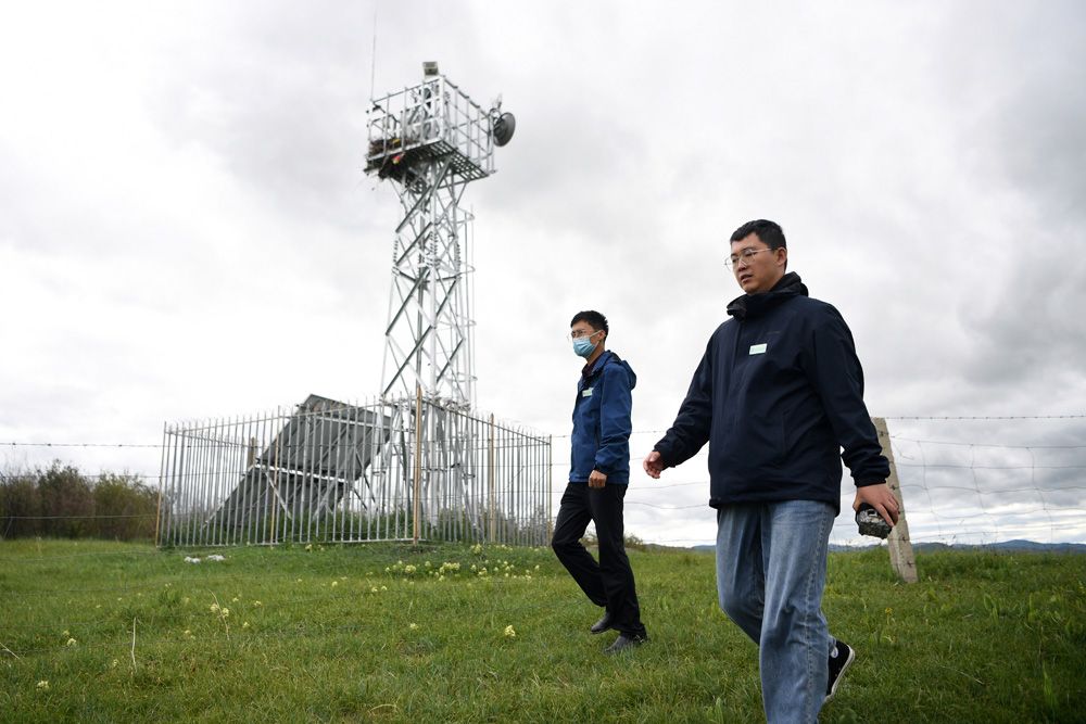 如今,在一代代守护者的默默付出下,保护区内草原沙化退化趋势得到根本遏制,生态环境持续改善,雪豹、黑颈鹤、黑鹳、狼、羚、麝等野生动物的种群数量不断增加,这里已成为镶嵌在高原上的明珠。图为甘肃黄河首曲国家级自然保护区管护中心曼日玛保护站工作人员王佳阳(右)和同事在保护区内巡护。(图片来源:新华社)