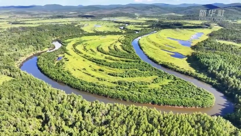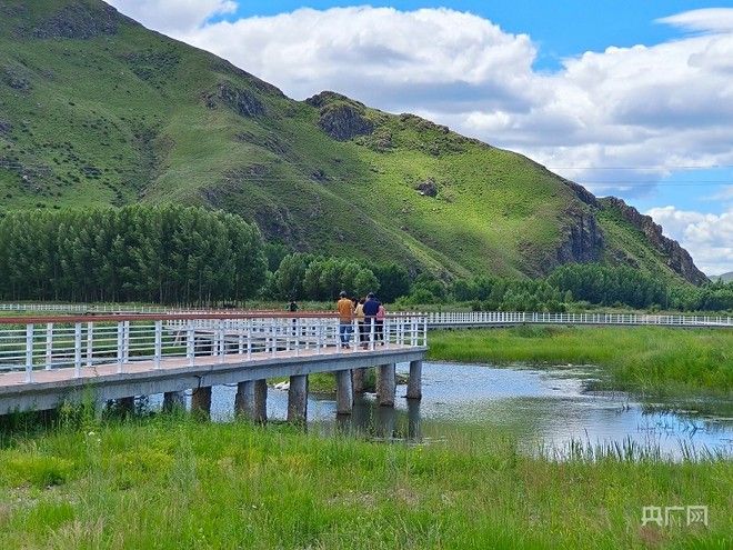 位于内蒙古赤峰市巴林左旗乌力吉沐沦河国家湿地公园,充分发挥沙里河作为城市近郊生态休闲场所的优势,探索湿地生态保护与人居活动的和谐关系,将湿地公园建设成为城市近郊生态文明建设活动的典型示范地。图为湿地公园沙那观景区。(图片来源:北京央广网)