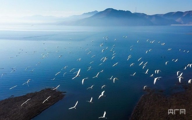 内蒙古赤峰市巴林左旗乌力吉沐沦河国家湿地公园沙那水库成为鸟的栖息地。(图片来源:北京央广网)