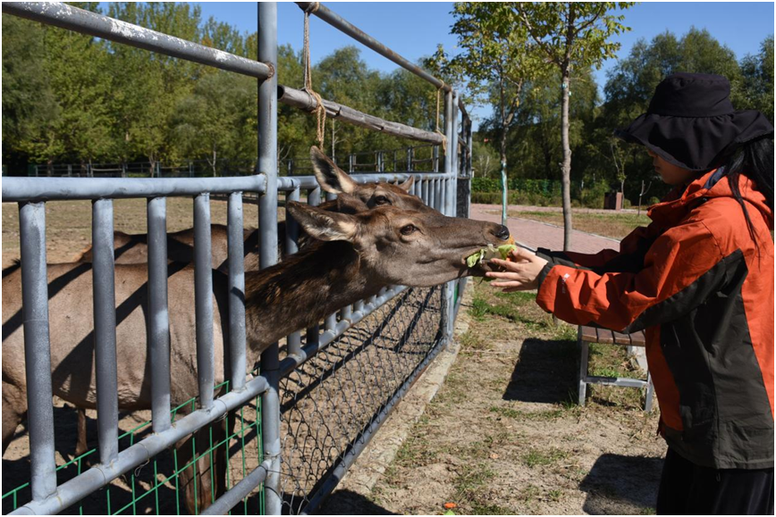 哈尔滨北方森林动物园为动物们准备的月饼花样繁多,兼顾营养、健康与美味的杂粮月饼和高营养、高颜值、口感极佳的升级版黄金月饼深受鹿群欢迎。图为马鹿、梅花鹿排排站吃月饼。(图片来源:《中国日报》)