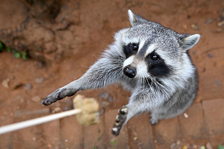 9月27日,云南昆明,浣熊取用“特制月饼”。随着中秋、国庆双节临近,云南野生动物园工作人员根据不同动物的食性,用葡萄、西瓜、小番茄、南瓜、红枣、花生、草料等食材制作“特制月饼”,动物家族纷纷开启“吃播”模式。(图片来源:中新社)