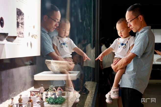 10月2日,江西省抚州市广昌县市民走进县博物馆看文物、学历史、长见识,感受广昌历史文化的无穷魅力,感悟中华文明的灿烂辉煌。(图片来源:人民网)