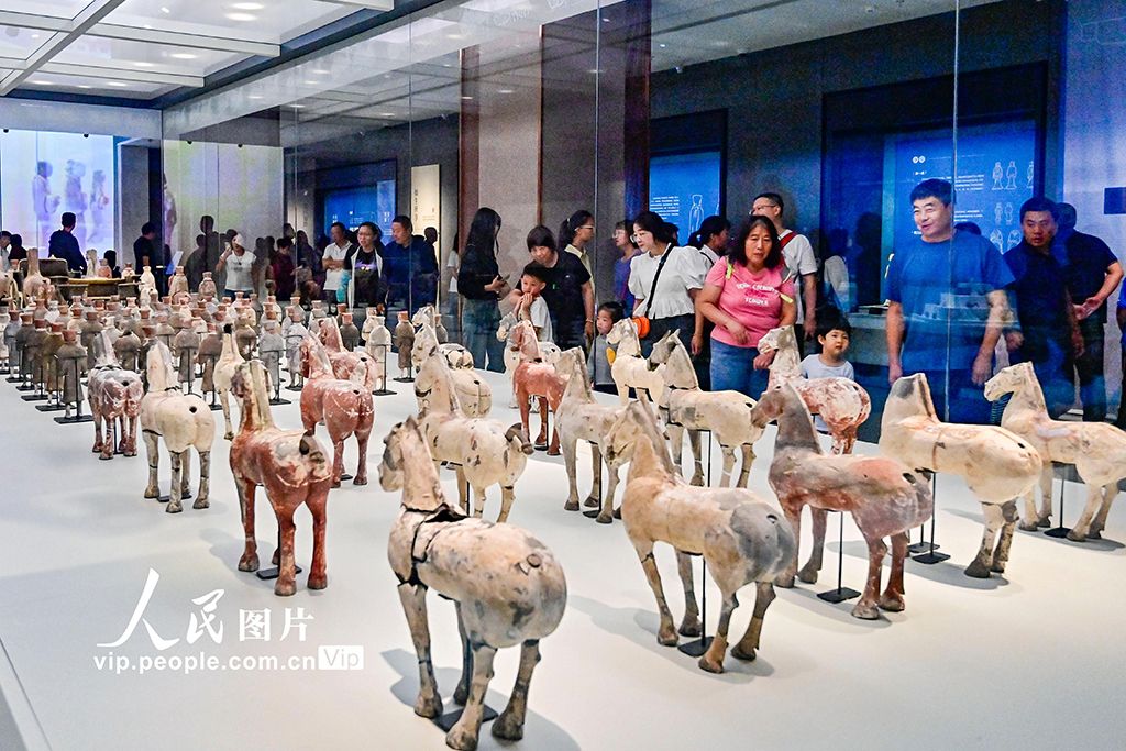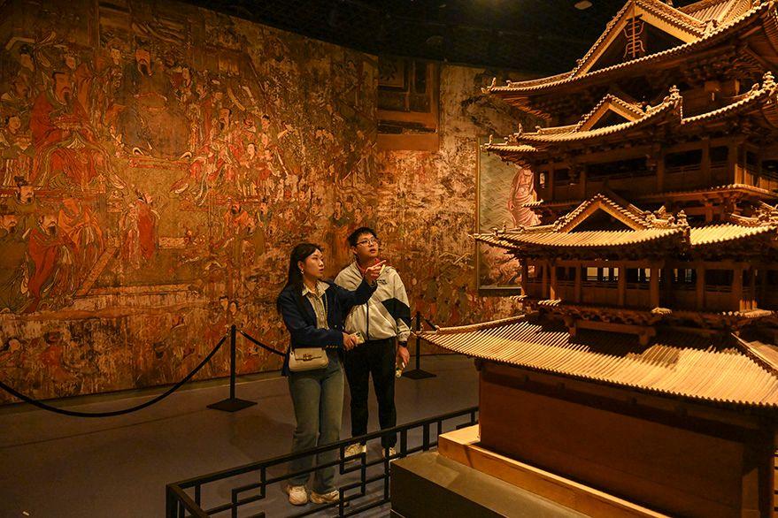 2023年10月5日,游人在山西运城博物馆参观游览。(图片来源:中新社)