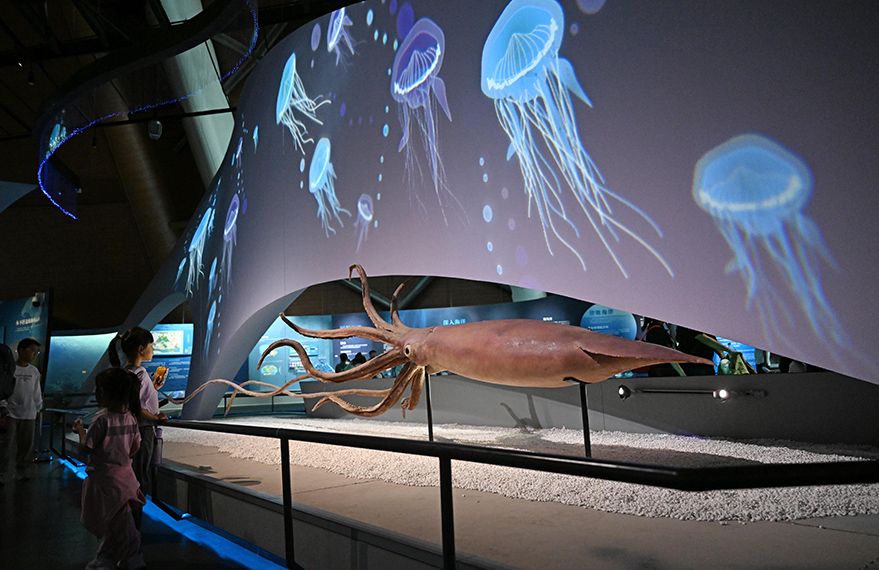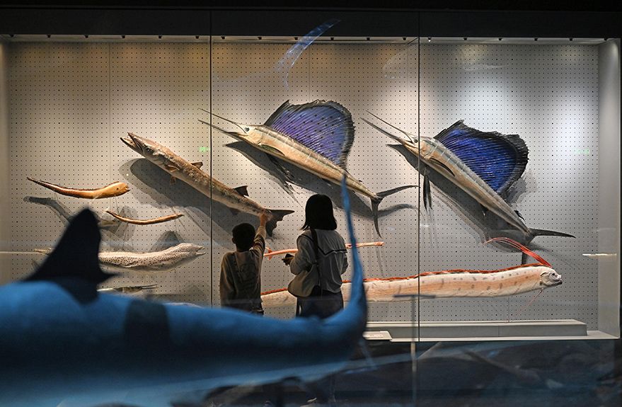 国庆假期期间,许多市民和游客来到位于天津市滨海新区的国家海洋博物馆参观游览,在感受海洋魅力的同时度过一个有意义的假期。(图片来源:新华社)