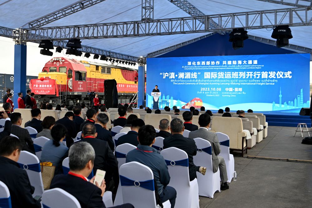 10月8日,“沪滇·澜湄线”国际货运班列在云南省昆明市王家营西站举行首发仪式,标志着这趟国际货运班列正式开行。
