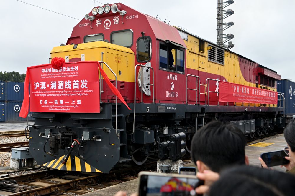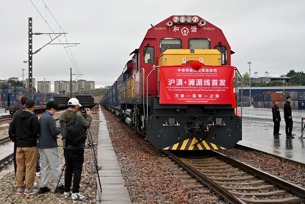 “沪滇·澜湄线”国际货运班列依托中老铁路、沪昆铁路打造,实现上海—昆明—老挝万象双向对开。(图片来源:中新社)